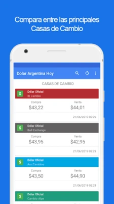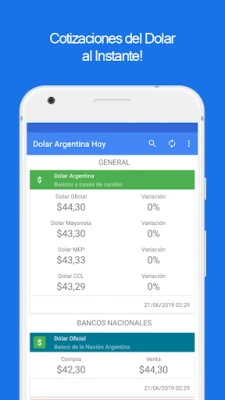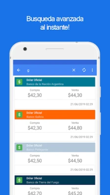 क्या आप अर्जेंटीना में डॉलर की वास्तविक समय की कीमतों पर नज़र रखने के लिए एक विश्वसनीय और व्यापक साधन खोज रहे हैं? यह एप्लिकेशन आपको प्रमुख राष्ट्रीय और प्रांतीय बैंकों, साथ ही विभिन्न प्रतिष्ठित विनिमय घरों से आधिकारिक डॉलर कोटेशन तक त्वरित पहुँच प्रदान करता है। वित्तीय बाज़ार की नब्ज़ को समझने के लिए सटीक और अद्यतन जानकारी आपकी उंगलियों पर मौजूद है, जिससे आप सूचित निर्णय लेने के लिए हमेशा तैयार रहें। यहाँ आपको Banco de la Nación Argentina, Banco Santander Río, Banco Galicia, और Nuevo Banco del Chaco जैसे संस्थानों सहित कई अन्य महत्वपूर्ण संस्थाओं से कीमतें एक ही स्थान पर मिलेंगी।