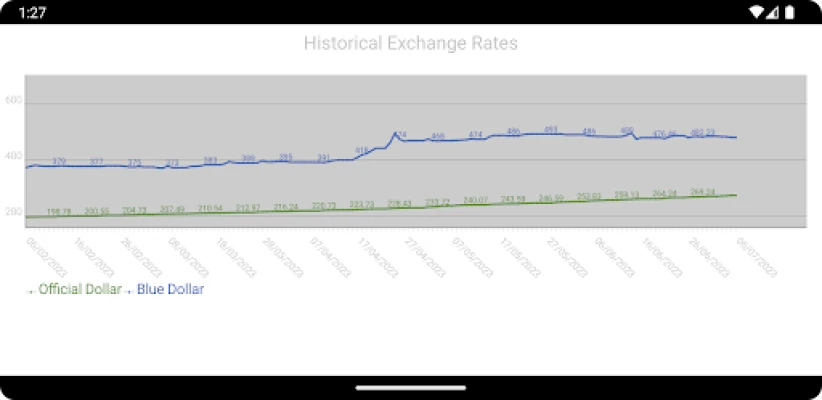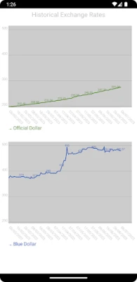 अद्वितीय 'स्क्रीन फ्लिप' सुविधा के साथ, आप एक ही चार्ट पर डॉलर और ब्लू डॉलर की ऐतिहासिक गतिविधियों की तुलना कर सकते हैं। यह आपको डेटा को समझने और महत्वपूर्ण पैटर्न को पहचानने में मदद करता है। चाहे आप एक निवेशक हों, यात्री हों, या सिर्फ अपनी वित्तीय जानकारी को बेहतर बनाना चाहते हों, यह ऐप डॉलर-पेसो विनिमय दरों की दुनिया में आपका विश्वसनीय मार्गदर्शक है। अपनी उंगलियों पर सटीक जानकारी और शक्तिशाली विश्लेषण टूल के साथ, आप हमेशा सूचित और आत्मविश्वासी निर्णय ले पाएंगे।