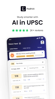 PadhAI आपको रोजाना द हिंदू और इंडियन एक्सप्रेस से सुबह 6 बजे अद्यतन करेंट अफेयर्स प्रदान करता है, जो 30 वर्षों के UPSC प्रश्नों से गहराई से जुड़े होते हैं, जिससे आपकी समसामयिक ज्ञान की नींव मजबूत होती है। यह केवल अध्ययन का माध्यम नहीं, बल्कि एक प्रतिस्पर्धी मंच भी है जहाँ आप "द्वंद्व" में दोस्तों या अन्य उम्मीदवारों के साथ क्विज़ खेल सकते हैं, दैनिक और मासिक "टूर्नामेंट" में भाग लेकर पुरस्कार जीत सकते हैं, और लीडरबोर्ड पर अपनी प्रगति देख सकते हैं। राजनीति, अर्थव्यवस्था, इतिहास, भूगोल, पर्यावरण, विज्ञान एवं प्रौद्योगिकी, करेंट अफेयर्स और CSAT सहित सभी विषयों का व्यापक कवरेज यह सुनिश्चित करता है कि PadhAI के साथ आपकी UPSC IAS की तैयारी समग्र और प्रभावी हो, जिससे आपका सपना वास्तविकता में बदल सके।