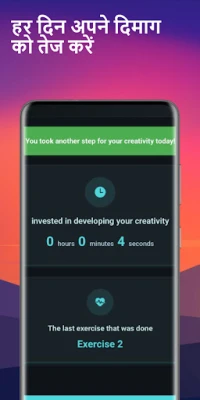 **Improve Creativity** के साथ, कल्पना केवल कला तक सीमित नहीं रहती, बल्कि जीवन के हर पहलू में आपकी शक्ति बन जाती है। यह आपकी एकाग्रता, उत्पादकता और समस्या-समाधान की क्षमता को बढ़ाता है, जिससे आप कार्यस्थल पर अलग पहचान बनाते हैं, सामाजिक संबंधों में अधिक प्रभावशाली बनते हैं, और करियर में तेजी से आगे बढ़ते हैं। अपने दिन की शुरुआत एक छोटे से मानसिक वार्म-अप के साथ करें, जो आपके मस्तिष्क के रचनात्मक केंद्रों को सक्रिय करेगा। सिर्फ 1 मिनट के संक्षिप्त अभ्यास भी आपको तनाव कम करने और सोचने का आत्मविश्वास बढ़ाने में मदद कर सकते हैं, जिससे आपकी रचनात्मक यात्रा को एक नई गति मिलेगी।