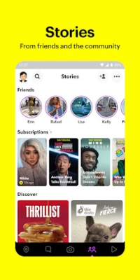 Snapchat पर आप सिर्फ़ दोस्तों से ही नहीं जुड़ते, बल्कि उनकी कहानियों के ज़रिए उनके दैनिक जीवन को भी करीब से देखते हैं। अपनी रुचियों के आधार पर Snapchat समुदाय से कहानियों को खोजें और दुनिया भर से ताज़ा ख़बरों व विशेष ओरिजिनल शो का आनंद लें। स्पॉटलाइट Snapchat के सबसे आकर्षक क्षणों को प्रदर्शित करता है, जहाँ आप अपने बेहतरीन स्नैप्स को सबमिट कर सकते हैं या बस बैठकर दूसरों की रचनात्मक प्रस्तुतियों का आनंद ले सकते हैं। अपने पसंदीदा स्नैप्स को आसानी से दोस्तों के साथ साझा करें। मानचित्र सुविधा से अपने सबसे अच्छे दोस्तों के साथ अपनी लोकेशन साझा करें या घोस्ट मोड के साथ पूरी तरह से गोपनीय रहें। जब आपके दोस्त अपनी लोकेशन साझा करते हैं, तो देखें कि वे क्या कर रहे हैं, और अपने आस-पास या दुनिया भर से लाइव समुदाय की कहानियों का अन्वेषण करें।