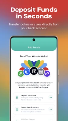 यात्रियों, डिजिटल खानाबदोशों और लैटिन अमेरिका में रहने वाले प्रवासियों के लिए डिज़ाइन किया गया, WanderWallet आपको छिपे हुए शुल्क और अनावश्यक जटिलताओं से मुक्त करता है। हमारी पारदर्शी मूल्य निर्धारण नीति केवल 2% विनिमय स्प्रेड और $0.20 का निश्चित शुल्क सुनिश्चित करती है, ताकि कोई अप्रत्याशित खर्च न हो। WanderWallet के भीतर आप सीधे सहायता प्राप्त कर सकते हैं और रिफंड का अनुरोध कर सकते हैं। यह कोई बैंक नहीं है, बल्कि एक सुरक्षित और विश्वसनीय मंच है जो लाइसेंस प्राप्त भागीदारों के माध्यम से सभी भुगतानों को संसाधित करता है, जिससे आपकी धनराशि की सुरक्षा सुनिश्चित होती है। WanderWallet के साथ सहज और सुरक्षित वैश्विक गतिशीलता का अनुभव करें, और जल्द ही और भी देशों में उपलब्ध होने की उम्मीद करें।
